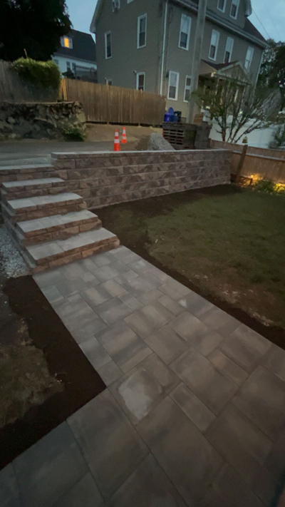 nicolock retaining wall, and 3 granite steps. Project came out clean.