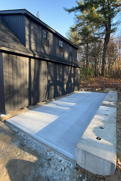 with a broom finish concrete pad. Customer is eventually putting a lean-to off of garage to keep loader covered.